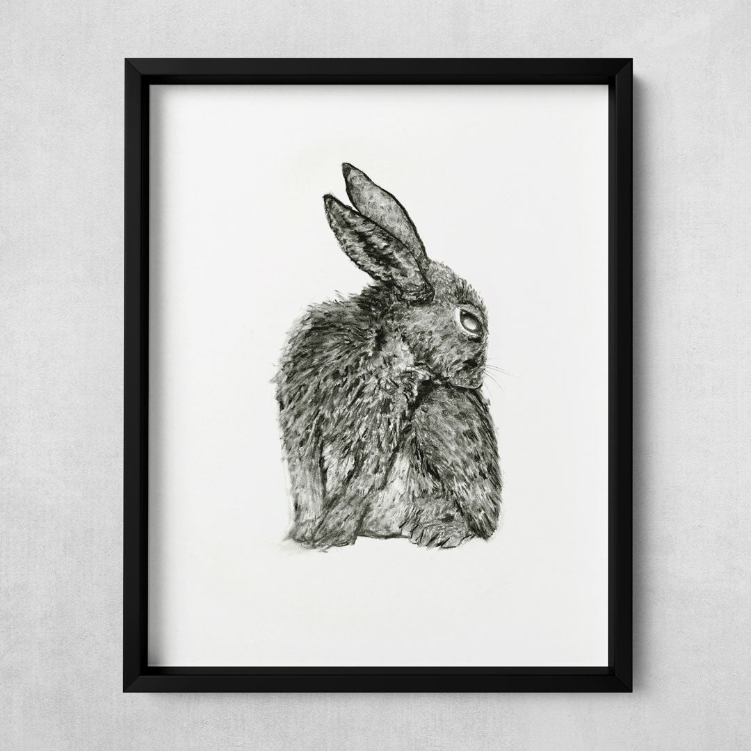 Sagacious Charcoal Rabbit Fine Art Print Animal Wall Art The Copper Wolf
